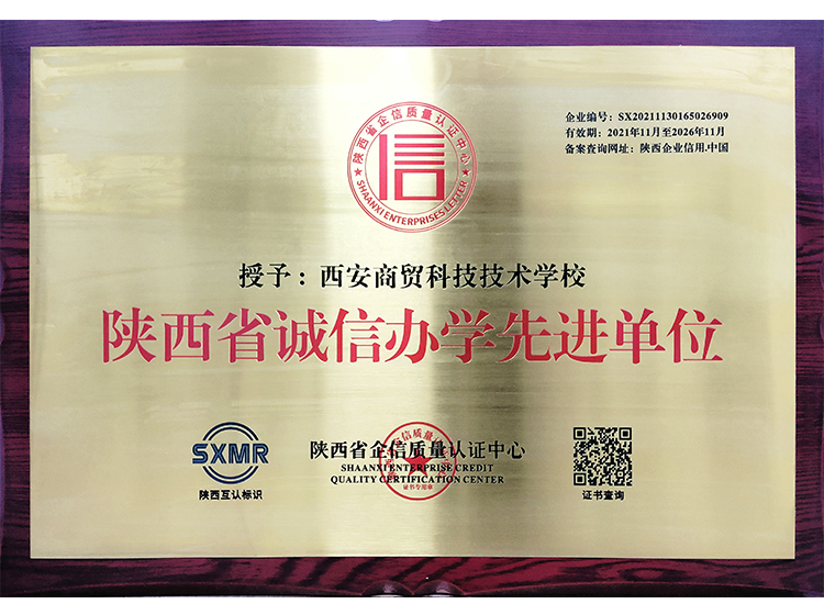 西安商貿科技技術學校成立于2004年,是一所隸屬于陜西省人力資源和社會保障廳的全日制省屬院校。學校坐落于西安市未央區,毗鄰國家AAAA級漢城湖景區,交通便利,環境優美,設施完善,占地面積180余畝,綠化率達45%,三季有花、四季常青,被譽為“園林式校園”。秉承“厚德強技,知行合一”的校訓,堅持內涵式發展,注重養成教育,培養德、智、體、美、勞全面發展的高素質現代化技能人才。
